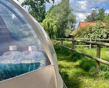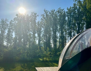 Nichée en pleine nature, la Bulle Cosy est un petit refuge idéal pour ralentir, respirer et se reconnecter. Pensée pour deux, elle mêle modernité et chaleur : lit double, poêle à bois pour les soirées fraîches, chaussons et peignoirs vous attendent pour un séjour tout en douceur.