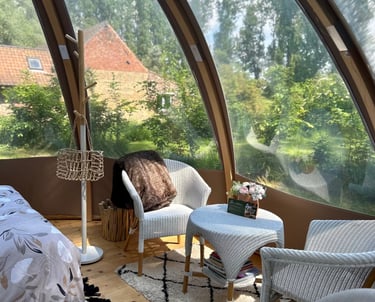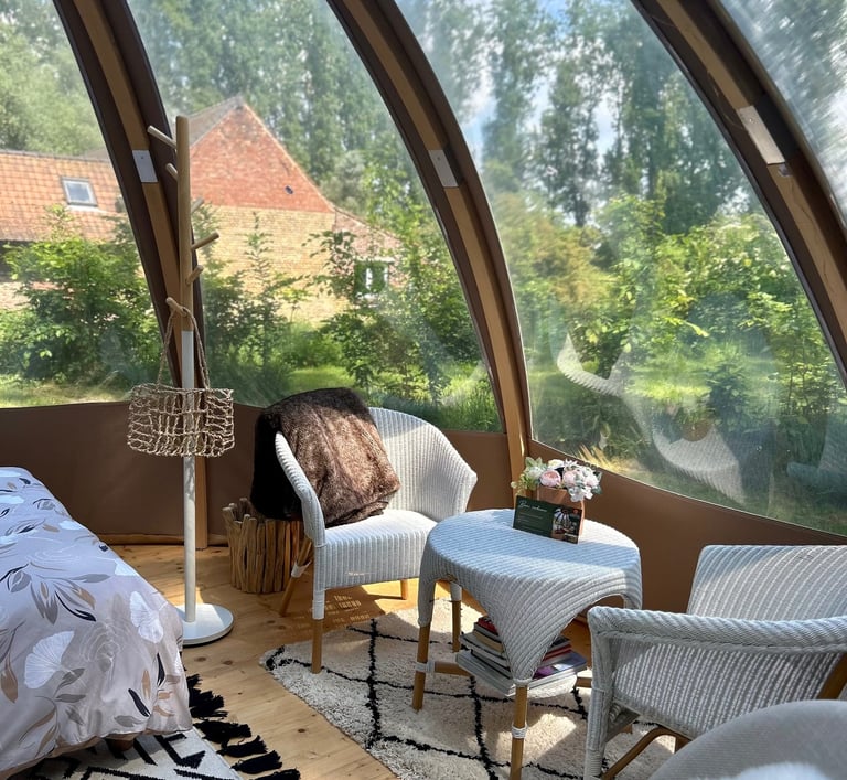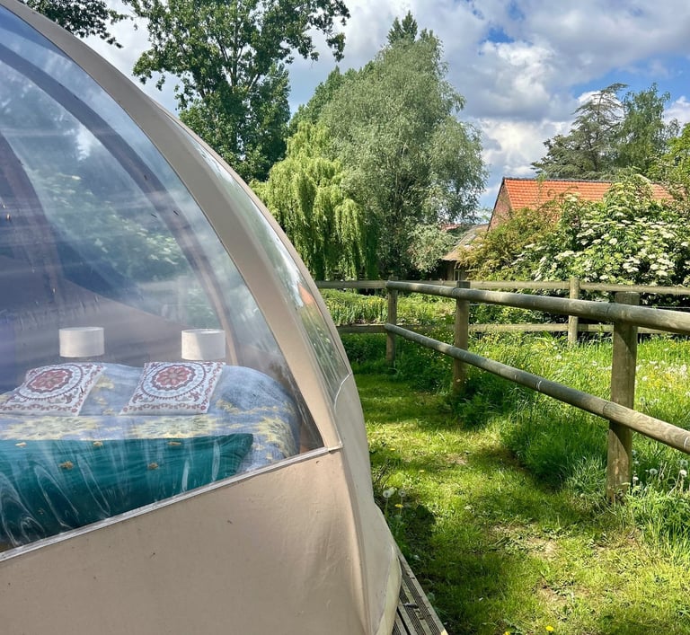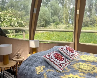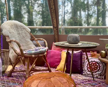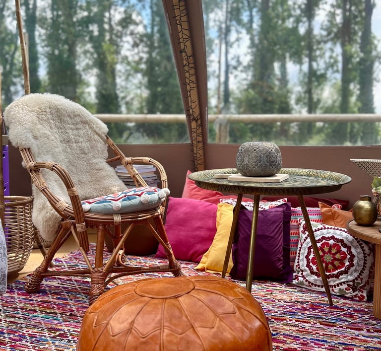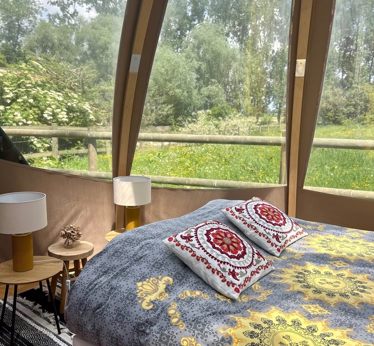 Avec ses couleurs chaudes et son ambiance inspirée du désert, la Bulle Berbère vous invite à une parenthèse dépaysante, sans quitter la nature.